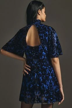 Best Pirce ???? By Anthropologie Mock-Neck Velvet Mini ???? Dress BLACK MOTIF ❤️