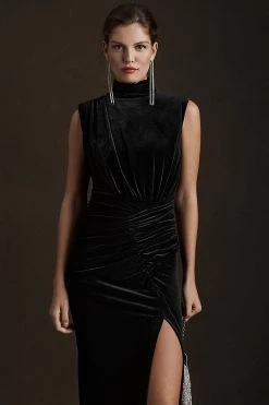 Outlet ???? Velvet By Graham & Spencer Mock-Neck Sequin ???? Dress BLACK ????