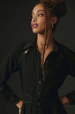Best Sale ???? Daily Practice By Anthropologie Zip-Front Mini ???? Dress BLACK ????
