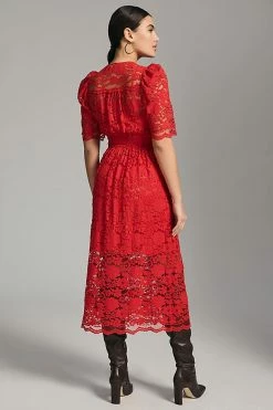 Budget ???? Hunter Bell Puff-Sleeve Lace ???? Dress RED ????