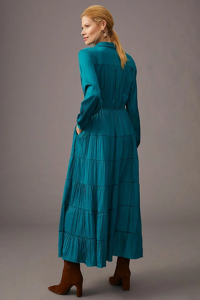 Best Pirce ???? By Anthropologie The Marais Maxi ???? Dress: Satin-Burnout Edition GREEN ❤️